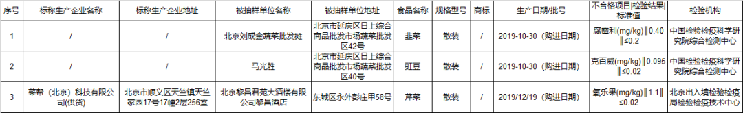3. 普通白菜(葉菜類蔬菜)抽檢項(xiàng)目包括久效磷、樂(lè)果、克百威、啶蟲脒、對(duì)硫磷、總汞(以Hg計(jì))、總砷(以As計(jì))、敵敵畏、敵百蟲、殺螟硫磷、毒死蜱、氧樂(lè)果、甲基對(duì)硫磷、甲基異柳磷、甲胺磷、磷胺、鉛(以Pb計(jì))、鉻(以Cr計(jì))、鎘(以Cd計(jì))、馬拉硫磷等20個(gè)指標(biāo)。