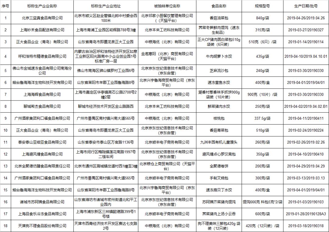 抽檢依據(jù)是《食品安全國(guó)家標(biāo)準(zhǔn) 食品添加劑使用標(biāo)準(zhǔn)》(GB 2760-2014)、《食品安全國(guó)家標(biāo)準(zhǔn) 食品中致病菌限量)(GB 29921-2013)、《食品安全國(guó)家標(biāo)準(zhǔn) 速凍面米制品》(GB 19295-2011)等標(biāo)準(zhǔn)及產(chǎn)品明示標(biāo)準(zhǔn)和指標(biāo)的要求。