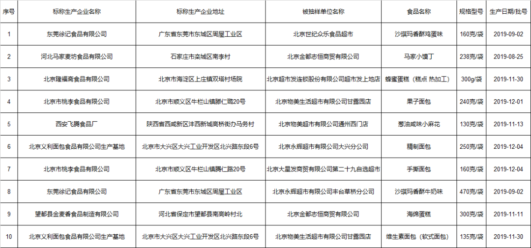 抽檢依據(jù)是《食品安全國(guó)家標(biāo)準(zhǔn) 食品添加劑使用標(biāo)準(zhǔn)》(GB 2760-2014)、《食品安全國(guó)家標(biāo)準(zhǔn) 食品中致病菌限量》(GB 29921-2013)、《食品安全國(guó)家標(biāo)準(zhǔn) 食品中污染物限量》(GB 2762-2017)、《食品安全國(guó)家標(biāo)準(zhǔn) 糕點(diǎn)、面包》(GB 7099-2015)等標(biāo)準(zhǔn)及產(chǎn)品明示標(biāo)準(zhǔn)和指標(biāo)的要求。