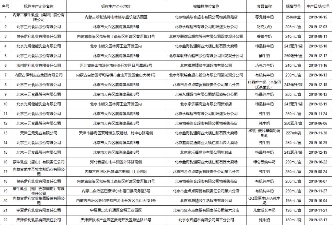 抽檢依據(jù)是《衛(wèi)生部等5部門關(guān)于三聚氰胺在食品中的限量值的公告》(2011年第10號(hào))、《食品安全國(guó)家標(biāo)準(zhǔn) 巴氏殺菌乳》(GB 19645-2010)、《食品安全國(guó)家標(biāo)準(zhǔn) 食品中污染物限量》(GB 2762-2017)、《食品安全國(guó)家標(biāo)準(zhǔn) 調(diào)制乳》(GB 25191-2010)、《食品安全國(guó)家標(biāo)準(zhǔn) 滅菌乳》(GB 25190-2010)、《食品安全國(guó)家標(biāo)準(zhǔn) 食品中真菌毒素限量》(GB 2761-2017)等標(biāo)準(zhǔn)及產(chǎn)品明示標(biāo)準(zhǔn)和指標(biāo)的要求。