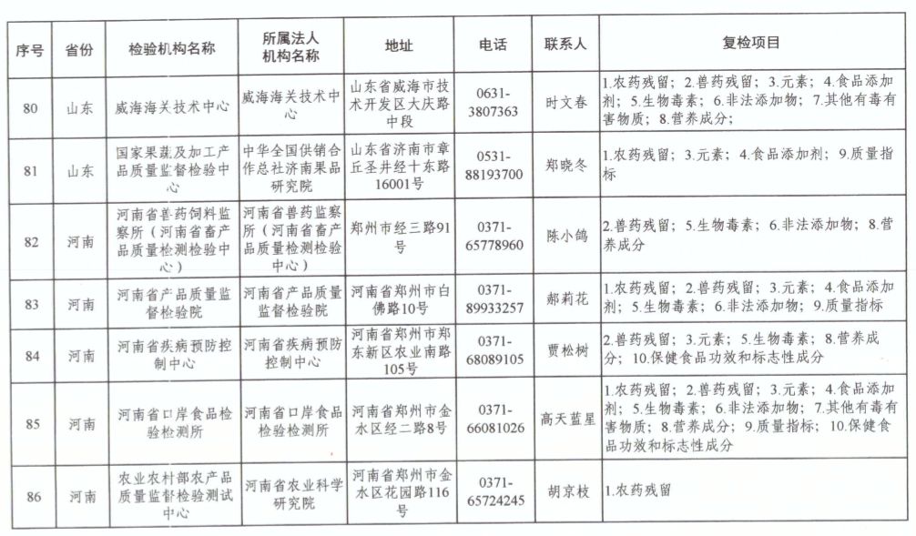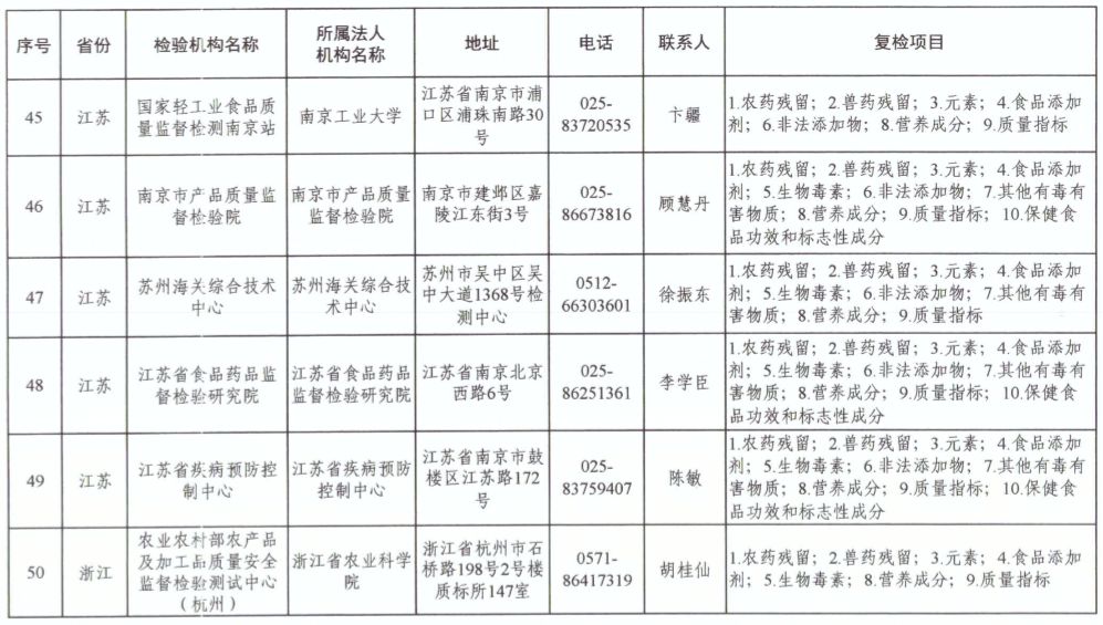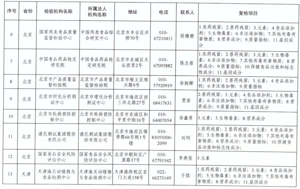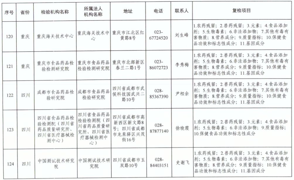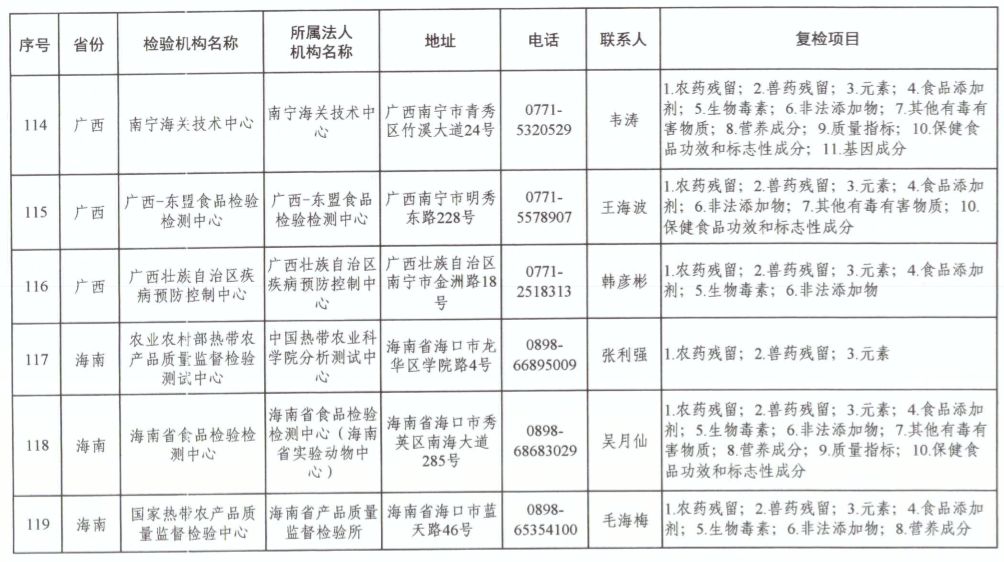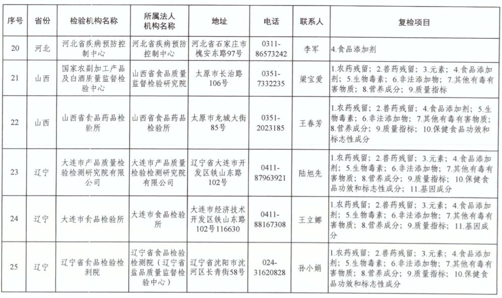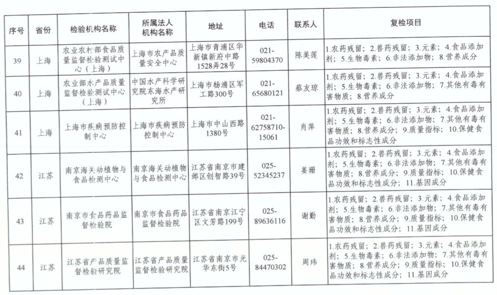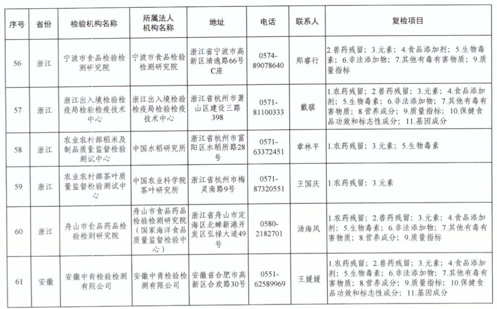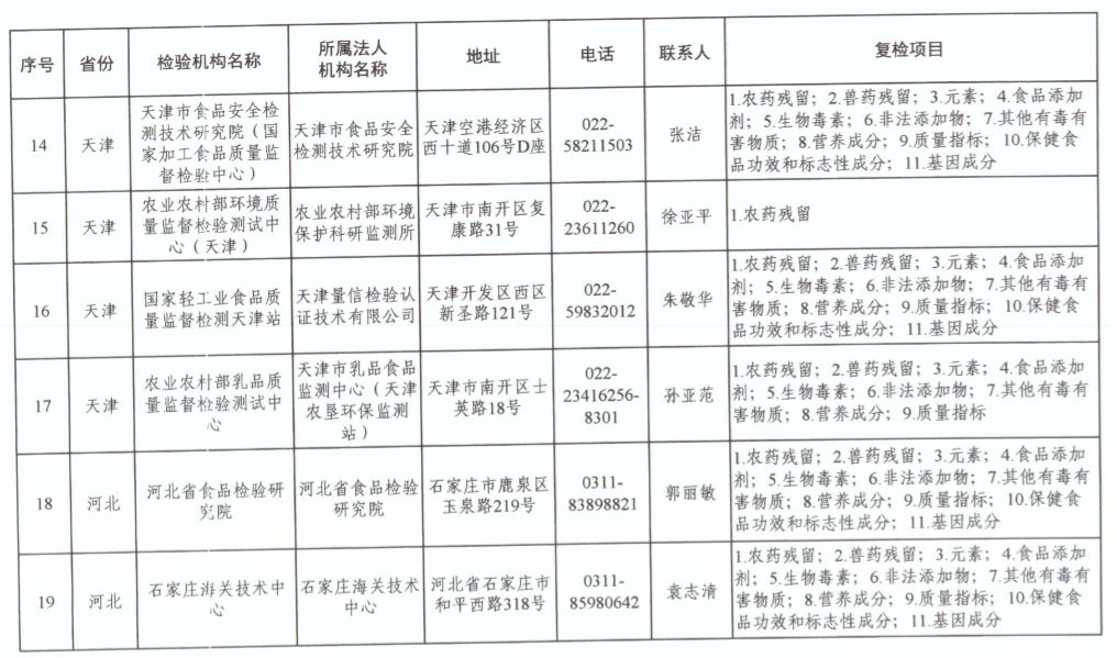 為滿足食品復(fù)檢需要,依據(jù)《中華人民共和國食品安全法》及其實(shí)施條例,市場(chǎng)監(jiān)管總局、國家衛(wèi)生健康委和農(nóng)業(yè)農(nóng)村部對(duì)食品復(fù)檢機(jī)構(gòu)進(jìn)行了重新確認(rèn),現(xiàn)將更新后的141家食品復(fù)檢機(jī)構(gòu)名錄(附后)予以公布,特此公告。