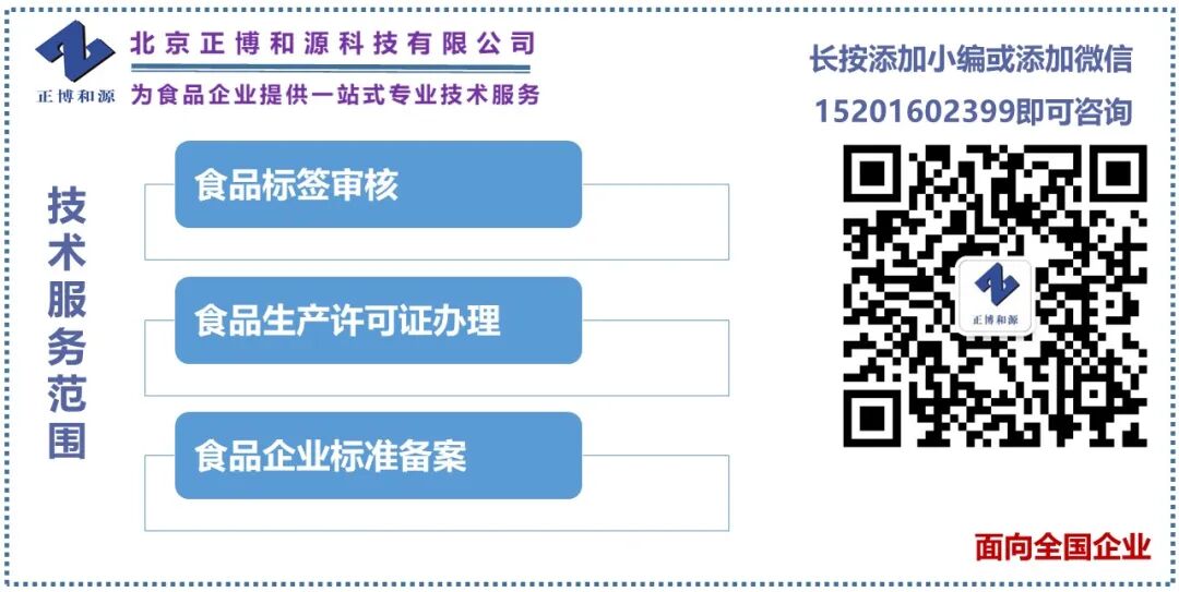 食品企業(yè)審核食品標(biāo)簽、辦理生產(chǎn)許可、企標(biāo)備案、定制各類培訓(xùn),歡迎撥打電話15201602399或咨詢微信公眾號(hào)!在微信搜索“食品安全與管理服務(wù)”關(guān)注本公眾號(hào),并可在“進(jìn)入公眾號(hào)”頁(yè)面選擇將本公眾號(hào)置頂。