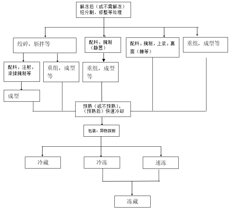 7. 原料中心溫度達(dá)到4℃或企業(yè)規(guī)定的解凍評(píng)價(jià)標(biāo)準(zhǔn)(產(chǎn)品中心溫度不高于4℃)時(shí),應(yīng)結(jié)束解凍,并及時(shí)進(jìn)入加工環(huán)節(jié),如不能及時(shí)進(jìn)行加工,應(yīng)在冷藏條件下暫存。不得超過36小時(shí)。