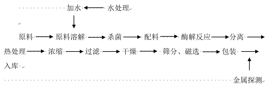 ① 原料選擇② 殺菌③ 配料(添加劑使用)④ 酶解反應(yīng)⑤ 熱處理⑥ 金屬探測(cè)